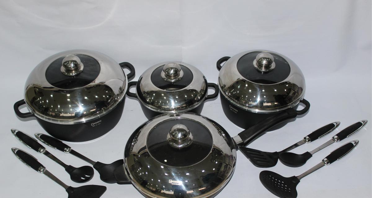 1X20 cm Oala cu capac1X24 cm Oala cu capac1X28 cm Oala cu capac1X48 cm Oala cu capac 1X48 cm Tigaie cu capac1X6 pcs Set piese bucatarie